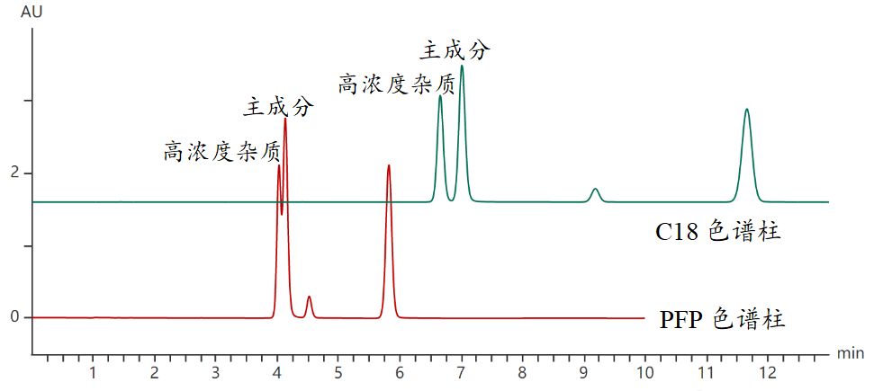 C18和PFP色譜柱的分離結(jié)果對比圖